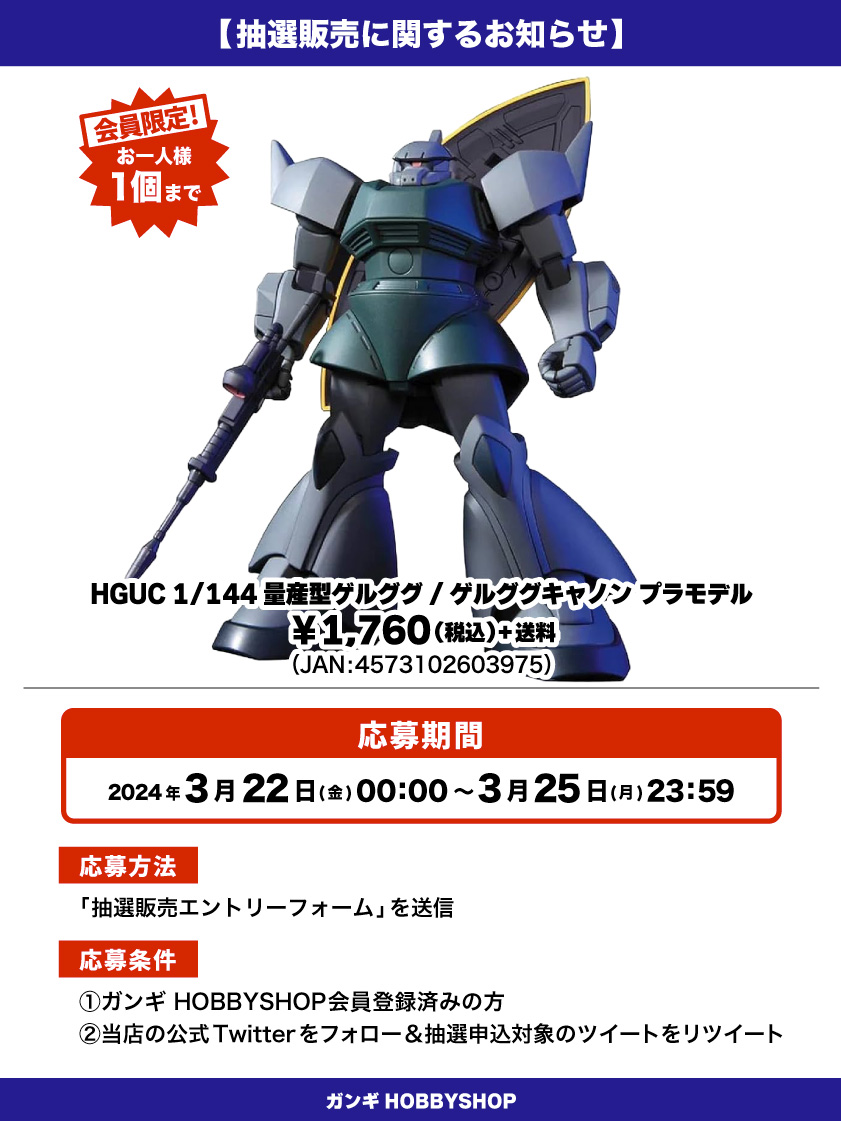 *ガンギHOBBYSHOPの会員でない方は抽選対象外となりますのでご注意ください。