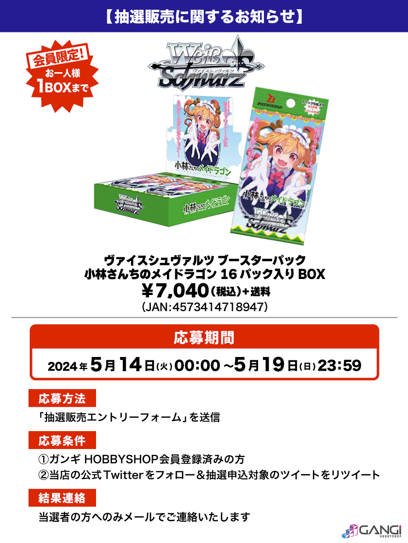 *ガンギHOBBYSHOPの会員でない方は抽選対象外となりますのでご注意ください。