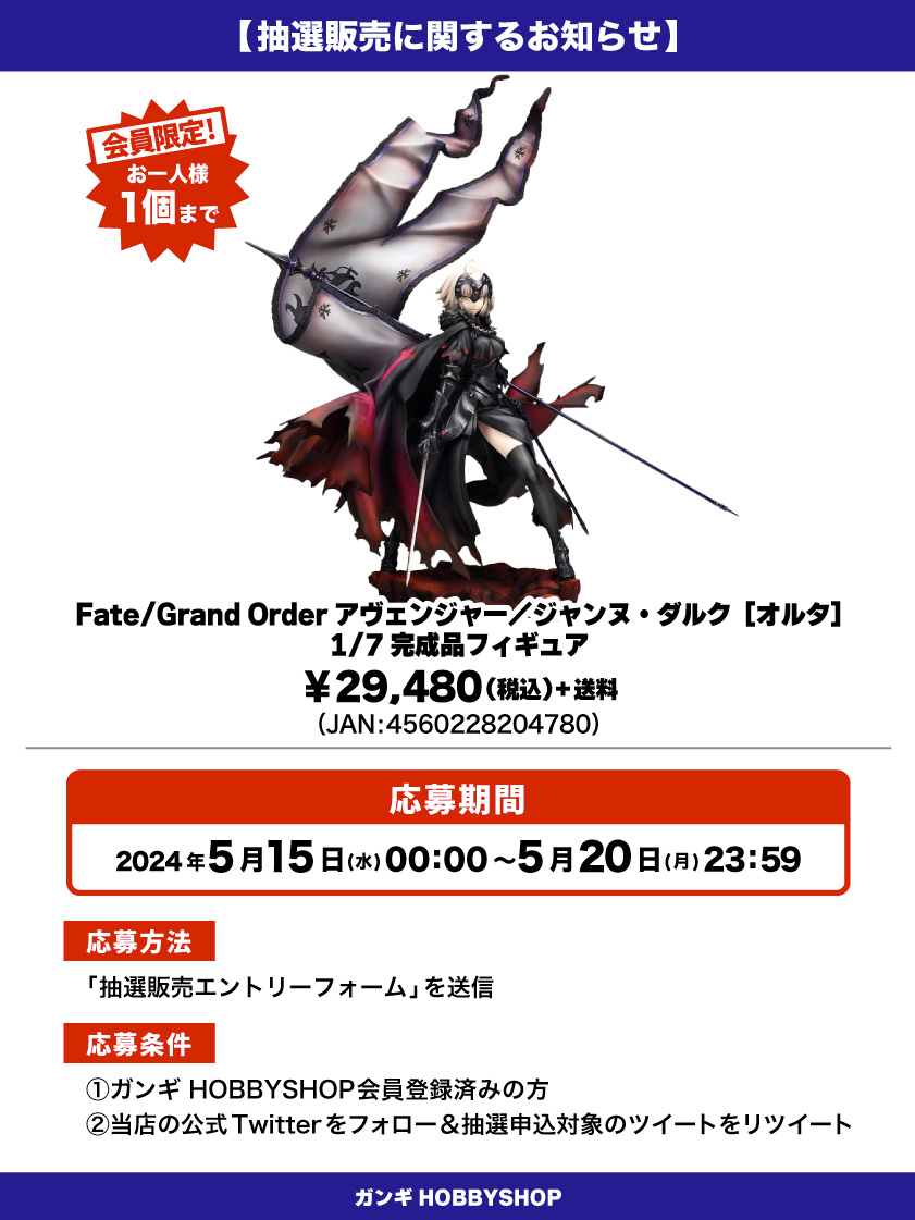 ※結果は当選者にのみお送りいたします。#Fate… pic.twitter.com/h0HJqdTAAr— ガンギ HOBBYSHOP (@MS_GANGI) May 15, 2024
