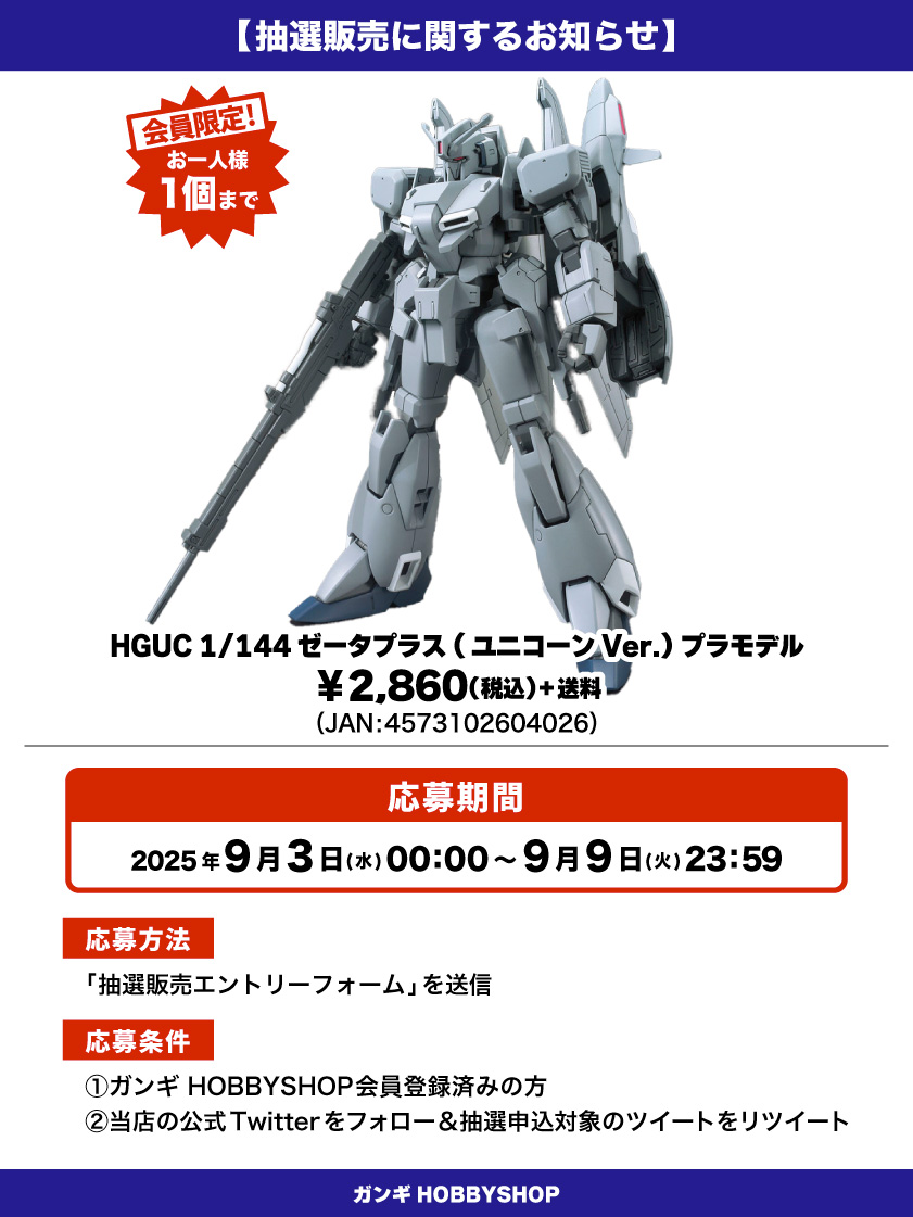 *ガンギHOBBYSHOPの会員でない方は抽選対象外となりますのでご注意ください。