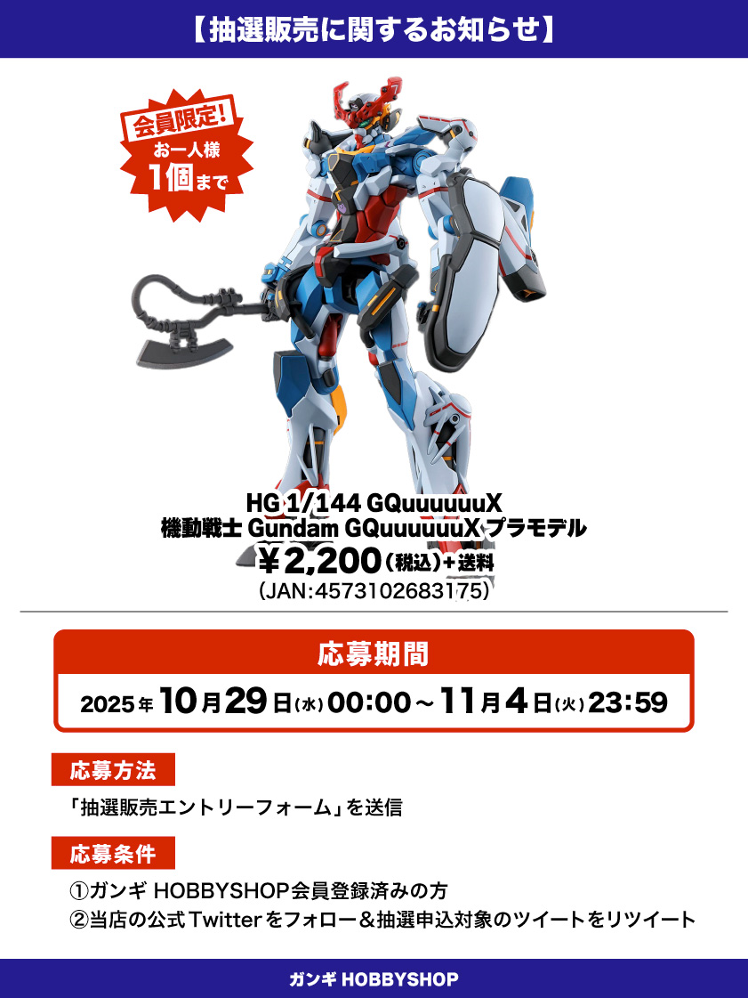 *ガンギHOBBYSHOPの会員でない方は抽選対象外となりますのでご注意ください。