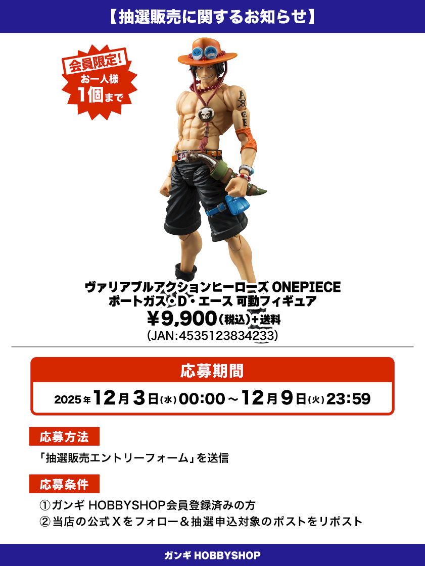 *ガンギHOBBYSHOPの会員でない方は抽選対象外となりますのでご注意ください。
