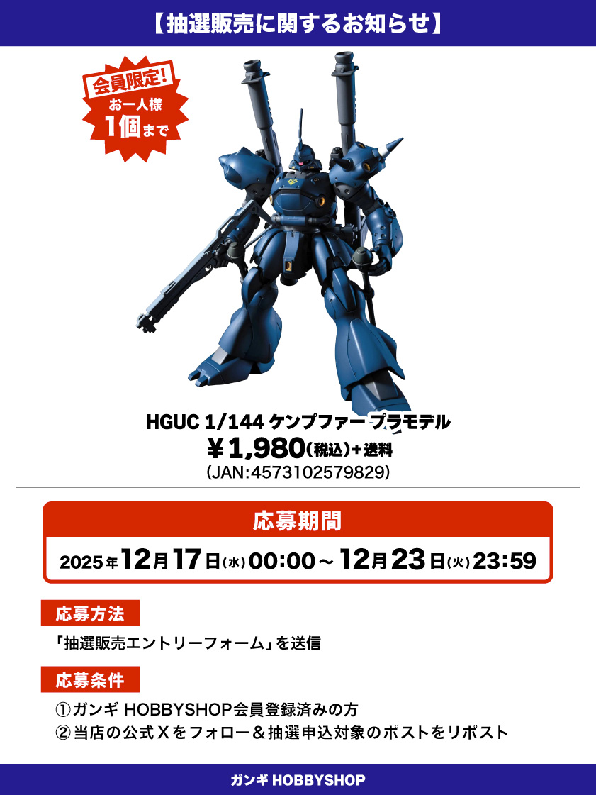 *ガンギHOBBYSHOPの会員でない方は抽選対象外となりますのでご注意ください。
