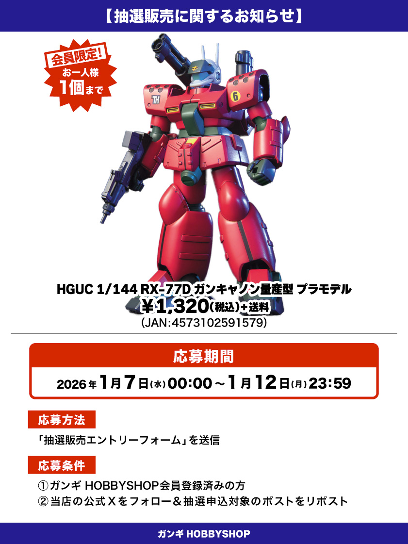 *ガンギHOBBYSHOPの会員でない方は抽選対象外となりますのでご注意ください。