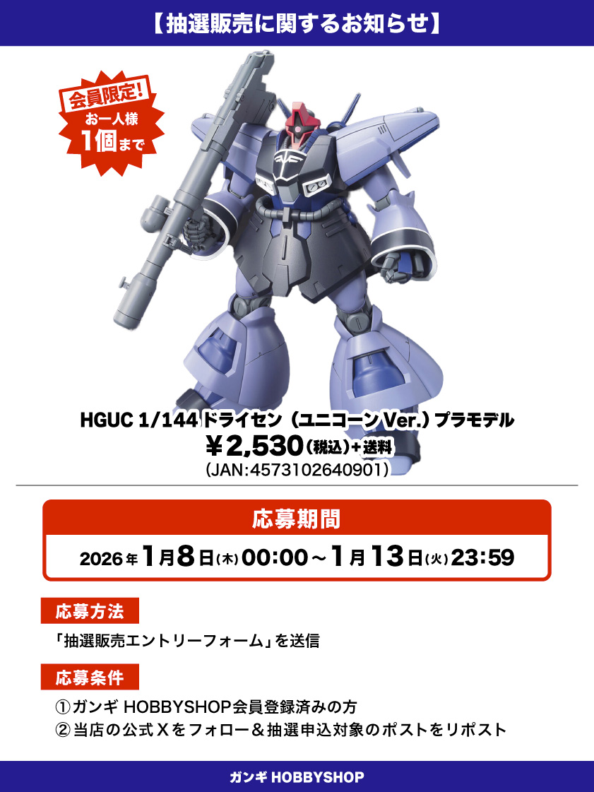 *ガンギHOBBYSHOPの会員でない方は抽選対象外となりますのでご注意ください。