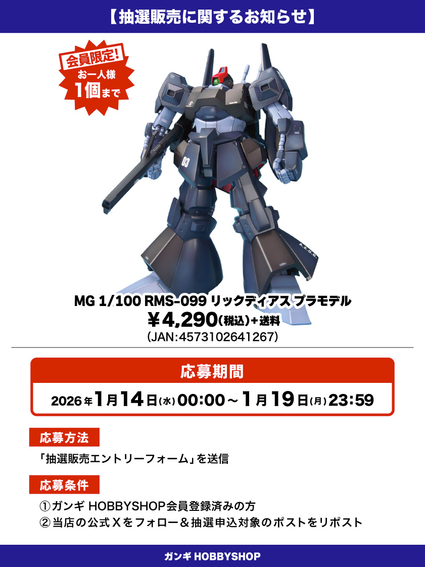 *ガンギHOBBYSHOPの会員でない方は抽選対象外となりますのでご注意ください。