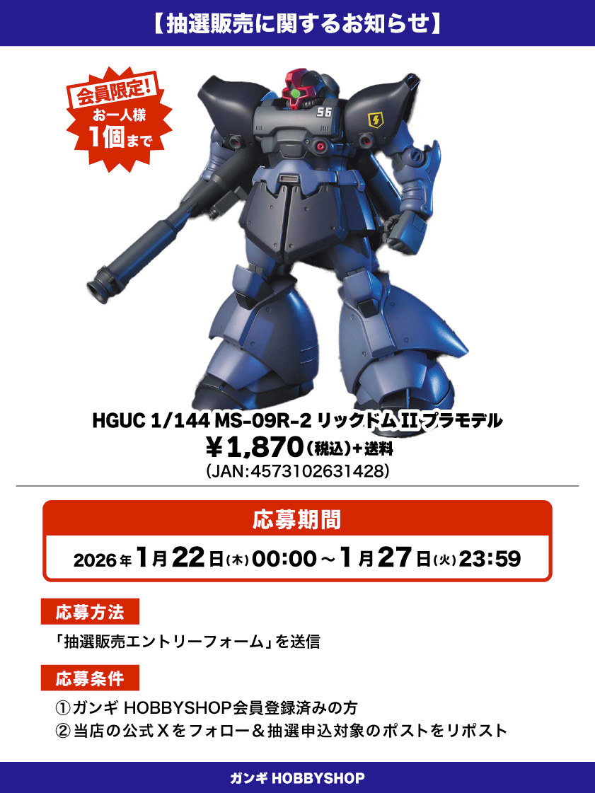 *ガンギHOBBYSHOPの会員でない方は抽選対象外となりますのでご注意ください。