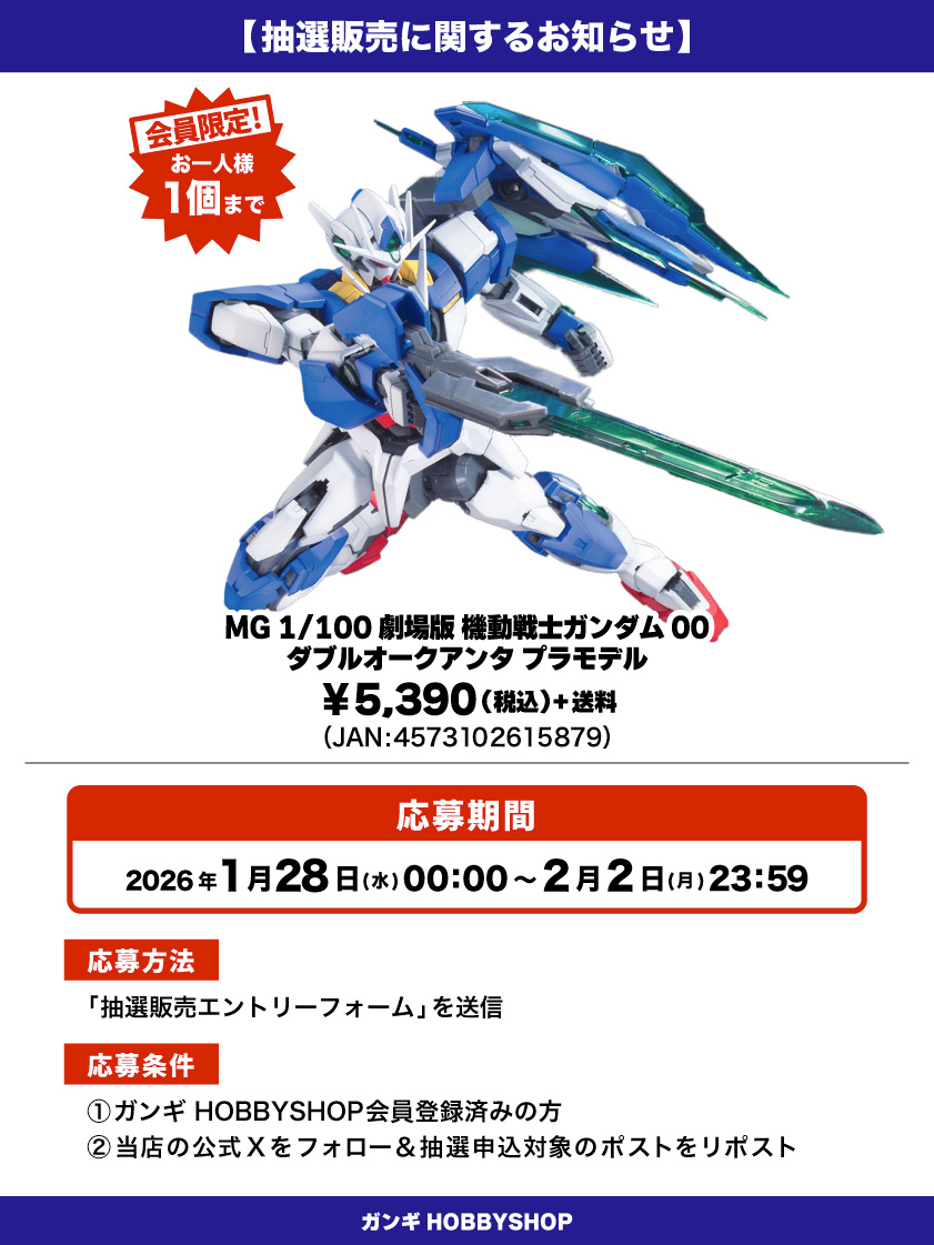 *ガンギHOBBYSHOPの会員でない方は抽選対象外となりますのでご注意ください。