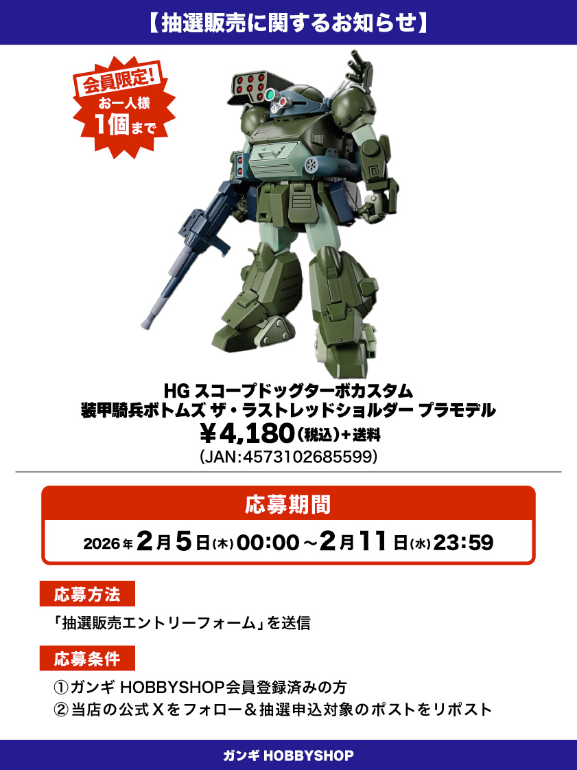 *ガンギHOBBYSHOPの会員でない方は抽選対象外となりますのでご注意ください。