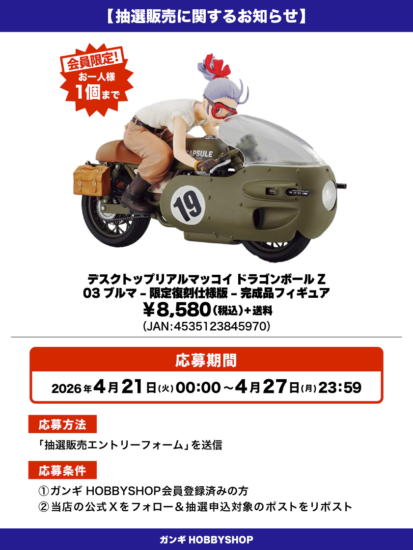 *ガンギHOBBYSHOPの会員でない方は抽選対象外となりますのでご注意ください。