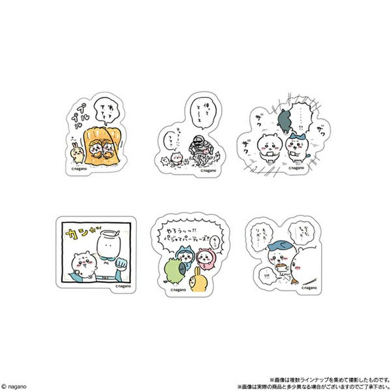 ちいかわたちのほのぼのとした姿や漫画の抜き出しイラストを使ったステッカーの種類は全16種。