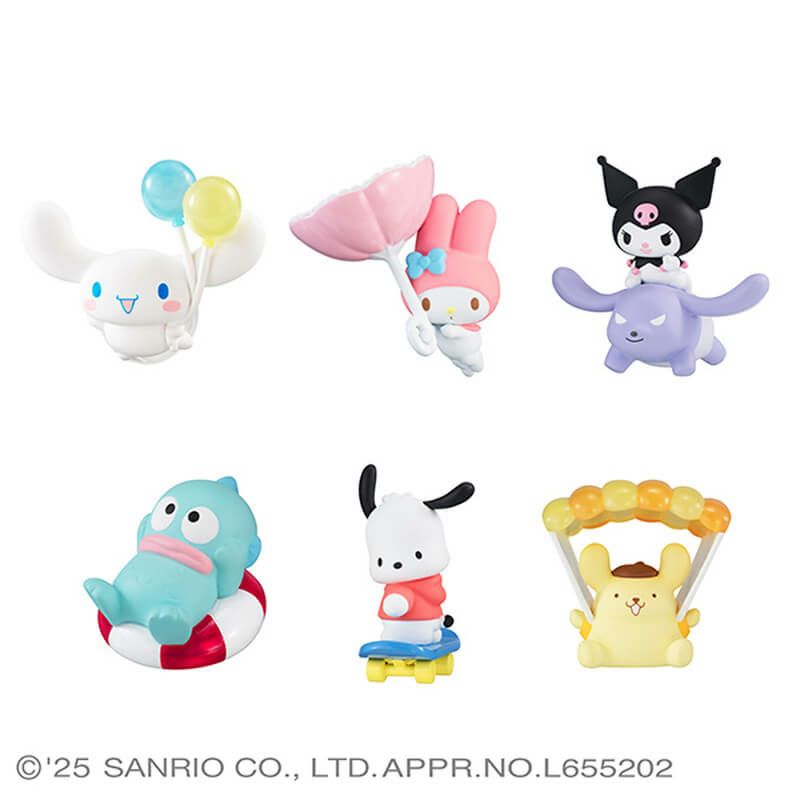 第1弾は傘や風船など飛んでいるポージングのキャラクターたちが可愛らしい、サンリオでの展開です。