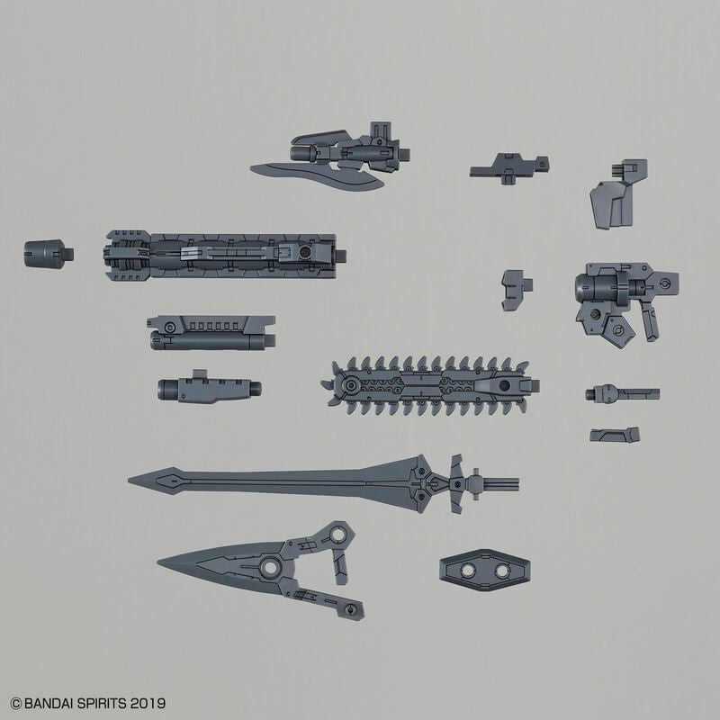 30MMのオプションウェポンシリーズにラビオット用アイテムが登場! ■バズーカ、スプレーガン、チェーンソーなど9種のウェポンパーツのセット。 【付属品】 ・バズーカパーツ×1 ・スプレーガンパーツ×1 ・チェーンソーパーツ×1 ・ガンソードパーツ×1 ・ショットガンパーツ×1 ・バスターソード×1 ・ジャマダハル×1 ・小型シールド×1 ・スリムボディパーツ×1 ■パッケージサイズ/重さ : 19 x 17 x 3 cm / 44g ©BANDAI SPIRITS 2019